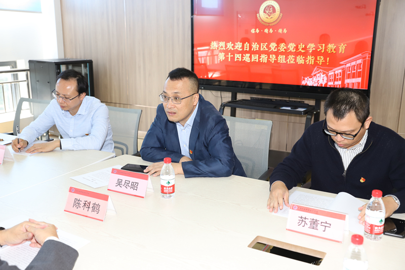10月27日上午,自治区党委党史学习教育第十四巡回指导组莅临开云指导,到我院进行了座谈,学校党委副书记陈科鹤参加了座谈会。会上,我院院长黄振宣向指导组作了题为《“三促学、三融合”推动党史学习教育走实落细》的工作汇报,指导组组长、广西大学党委副书记、副校长吴尽昭对我院开展党史学习教育工作的做法和成效给予了充分肯定,并提出了要进一步明确高职马院发展定位、不断加强马克思主义学科建设的期望。
