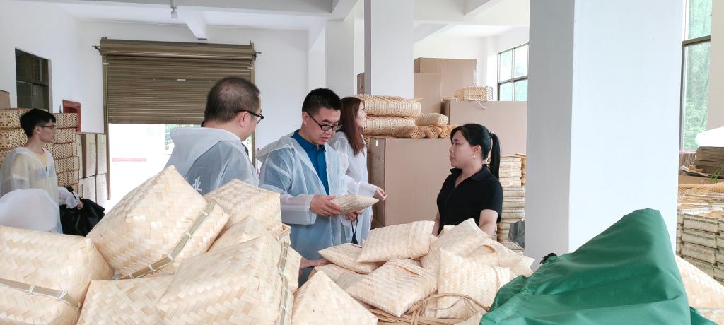 团队师生在小庞竹编工艺品厂调研