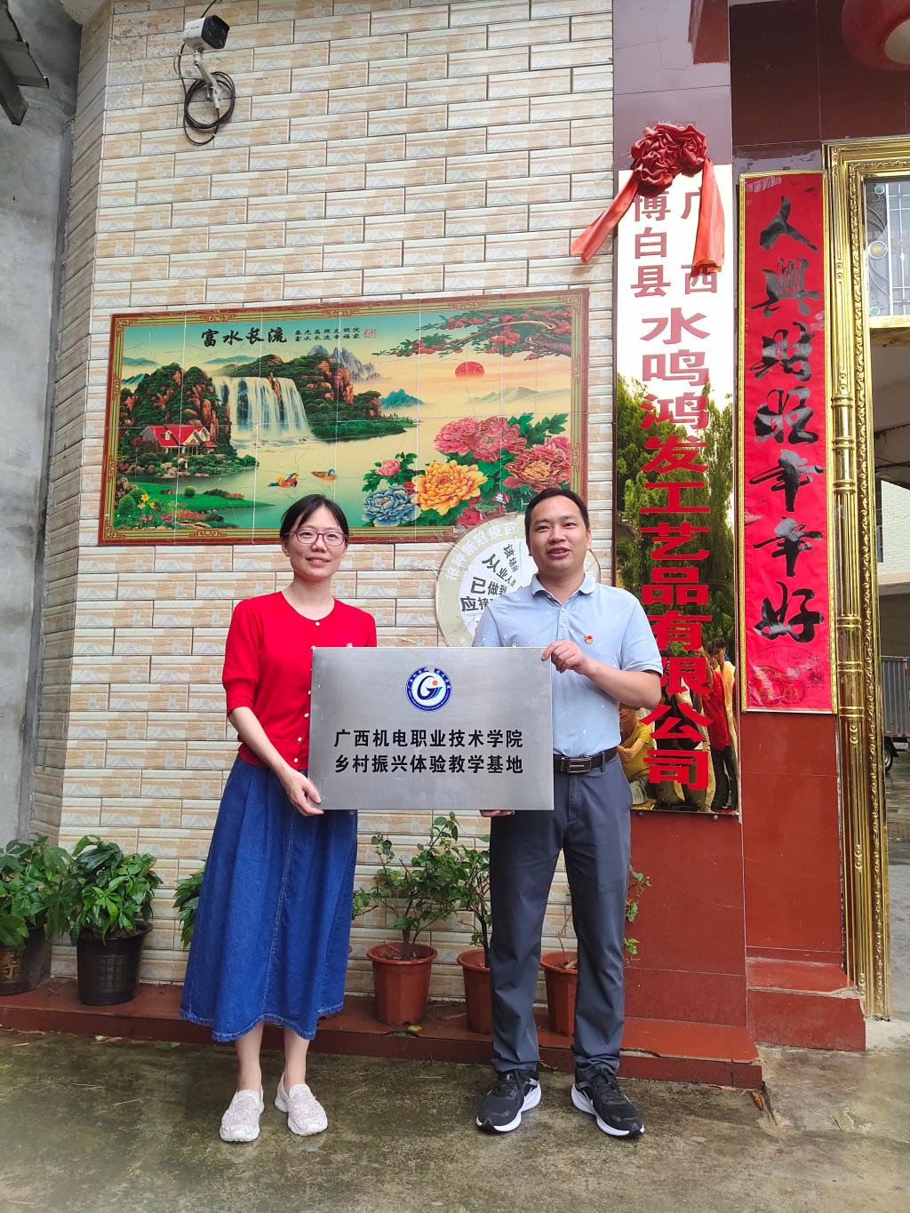 水鸣镇镇长冼秀斌与学院教师代表为乡村振兴体验教学基地挂牌