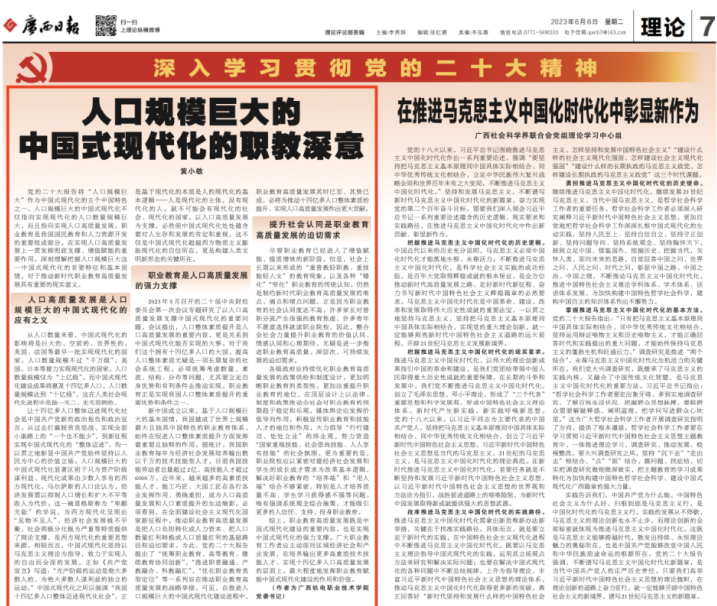 《广西日报》刊发开云理论文章《人口规模巨大的中国式现代化的职教深意》