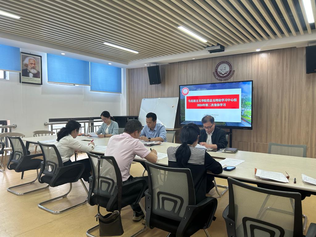 3月26日下午,马克思主义学院党总支理论学习中心组开展集体学习,专题学习习近平总书记关于新质生产力的重要论述。会议由马克思主义学院党总支书记、院长黄振宣主持,党总支委员、组织员及各支部书记参加。