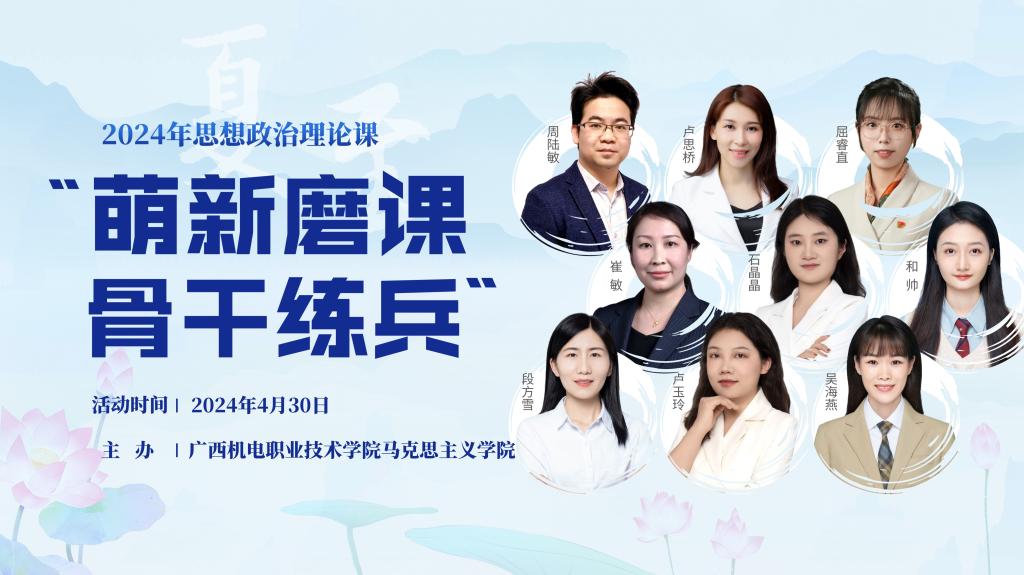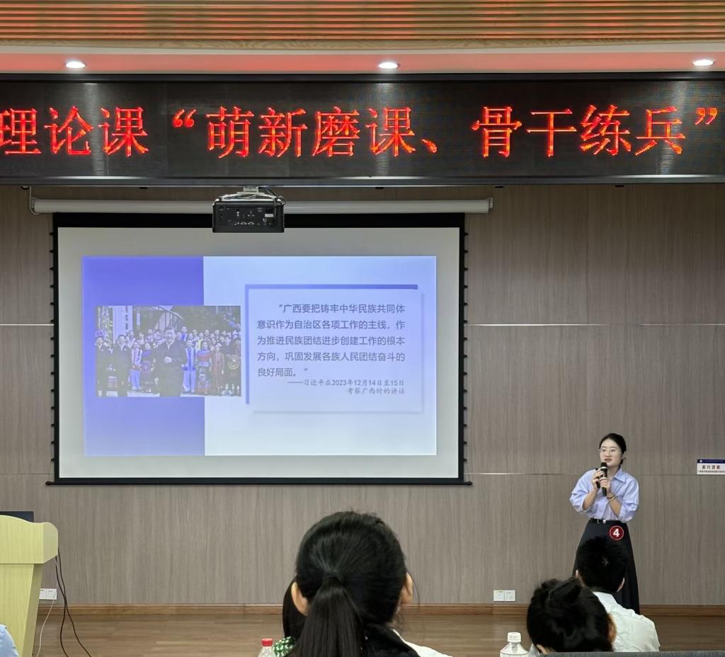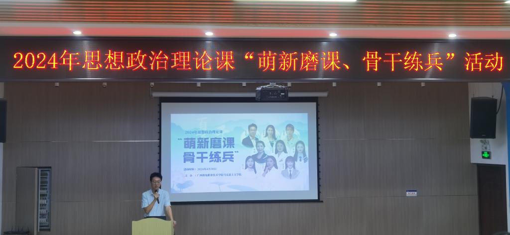 为进一步提升我校思想政治理论课教师的政治素养和业务能力,增强思政课的思想性、理论性和亲和力、针对性,4月30日下午,我院在弘毅楼“三马讲堂”举办2024年思想政治理论课“萌新磨课、骨干练兵”活动,共有9名教师进行现场教学展示。本次 “磨课会”邀请校外专家担任评委。开云全体思政课专兼职教师及广西国际商务职业技术学院、广西工业职业技术学院等院校共70多名思政课教师参加了观摩。