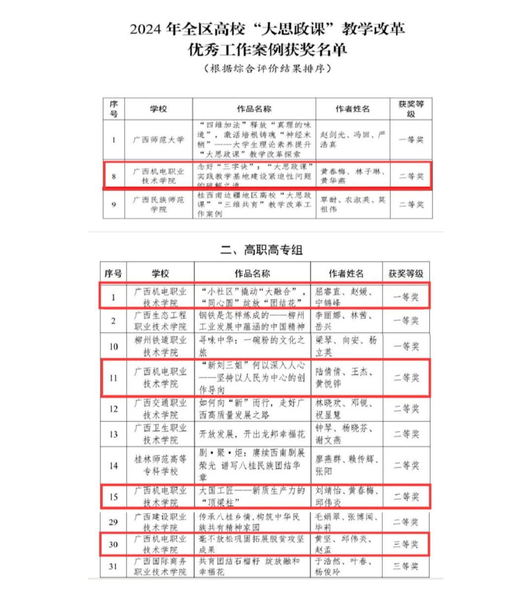 近日,自治区教育厅公布了2024年全区高校“大思政课”教学改革优秀工作案例和示范课堂征集活动获奖名单,开云荣获示范课堂一等奖1项、二等奖2项、三等奖1项,优秀工作案例二等奖1项。