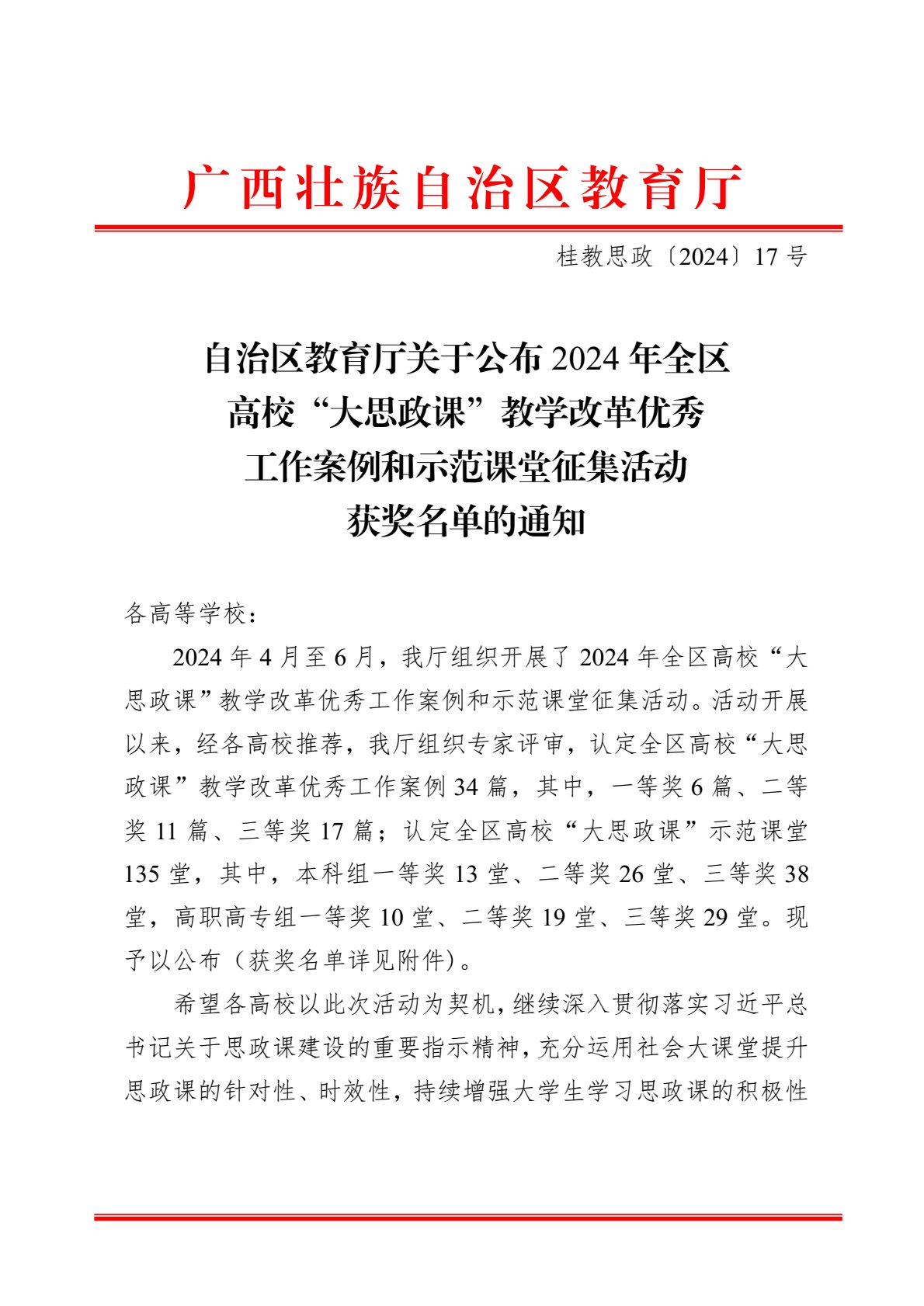 据悉,为深入贯彻落实习近平总书记在学校思想政治理论课教师座谈会上的重要讲话精神以及关于“大思政课”的重要指示批示精神,加快构建“大思政课”建设工作格局,培育形成一批“大思政课”教学改革成果,2024年4月至6月,自治区教育厅组织开展了全区高校“大思政课”教学改革优秀工作案例和示范课堂征集评选活动。