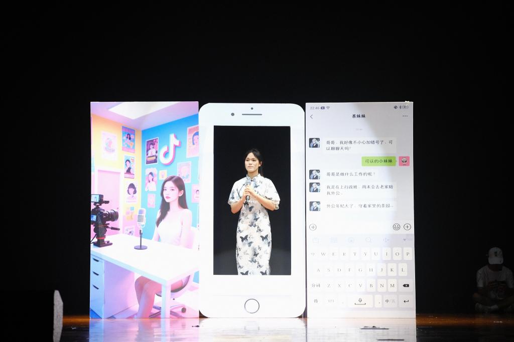 本次主题团日活动紧扣主题,精心策划了三个篇章,共包含14个精彩纷呈的节目。在第一篇章“薪火相传・初心如磐”,情景诗朗诵《工火燎原》回溯中国工人阶级在五四运动中作为独立政治力量登上历史舞台的壮阔场景,以汽笛声与诗韵交织重现工运火种燎原的革命情怀;南宁中心血站带来的情景舞蹈《生命之花》以生动舞姿表达对生命的敬畏礼赞;讲述剧《等待》,以邓稼先隐姓埋名28年投身核事业为背景,演绎科学家夫妇“二十八年分离,一生守望”的家国大爱,令现场观众动容。第二篇章“砺刃铸魂・青春践梦”聚焦时代使命与青年作为。舞蹈《我心中的红》巧妙融合光影与肢体语言,深情诠释革命历史的传承;小品《擦亮眼睛》则以幽默诙谐的剧情,犀利揭露网络诈骗手段,寓教于乐,反诈教育意义深远。情景合唱《稻・鱼》依托侗族稻作文化,以“稻浪翻涌、鱼跃欢歌”的生动意象,细腻描绘出各族同胞在中国共产党的光辉照耀下,携手并进、团结奋进的壮美图景。第三篇章“智创未来・向新而行”精彩纷呈:壮族铜鼓韵律演绎古朴与现代交融之美,机械臂与艺术巧妙结合,展现科技魅力;歌曲《篇章》激昂唱响,串联起学子们在科技攻关、社会服务一线的奋斗瞬间,全场响起“请党放心,强国有我”的青春誓言,共鸣强烈。
