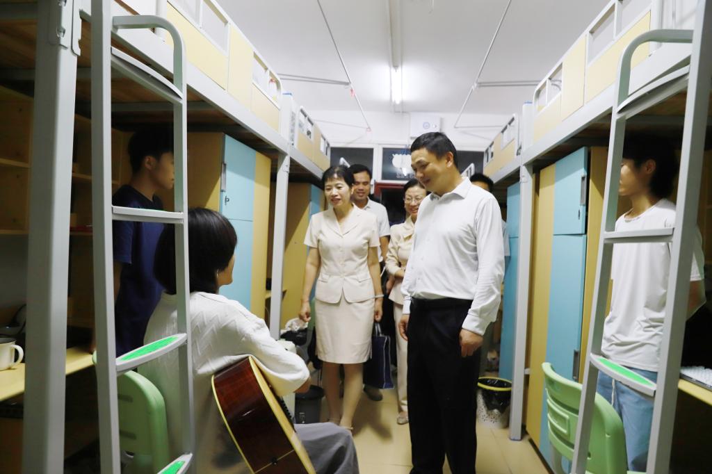 在报到点,学校领导向现场工作人员详细了解新生报到的流程,并向相关负责人了解新生报到的进度,询问新生在办理报到手续时是否顺利。校领导与新生亲切交谈,嘱咐大家尽快融入校园,以积极进取的姿态全身心投入学习、生活,珍惜时光、勤学笃行,不负老师和家长寄予的殷切期望。在食堂和学生宿舍,学校领导仔细查看了食堂的卫生状况、饭菜品种和价格,关切询问新生们在宿舍入住情况,生活上有没有遇到什么困难等,表示学校将会全力做好后勤保障,为同学们安心学习营造良好环境。