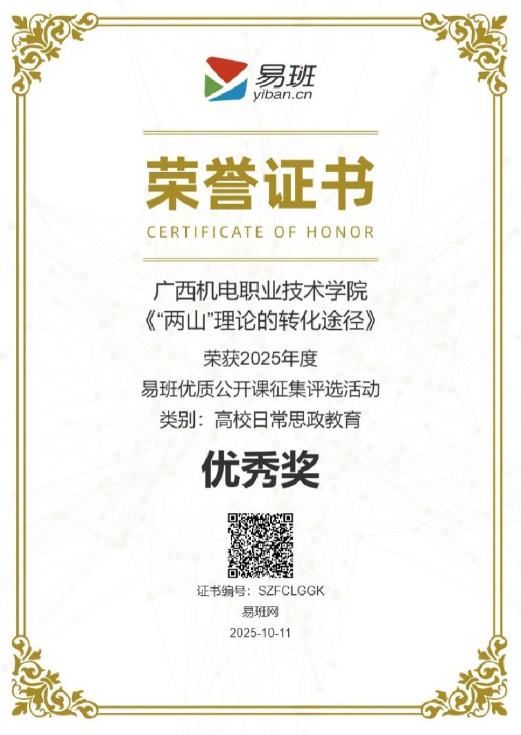 近日,由教育部易班举办的“新时代,新思想”2025年易班优质公开课征集评选活动(第五届易班优质思政公开课大赛)获奖结果揭晓,经过决赛专家团综合评审,50部精品课程获得荣誉。开云此前报送的作品《“两山”理论的转化途径》荣获优秀奖。据悉,本次活动共有全国87所高校394部课程参赛评选,28.87万名学生总计投票43.23万次。