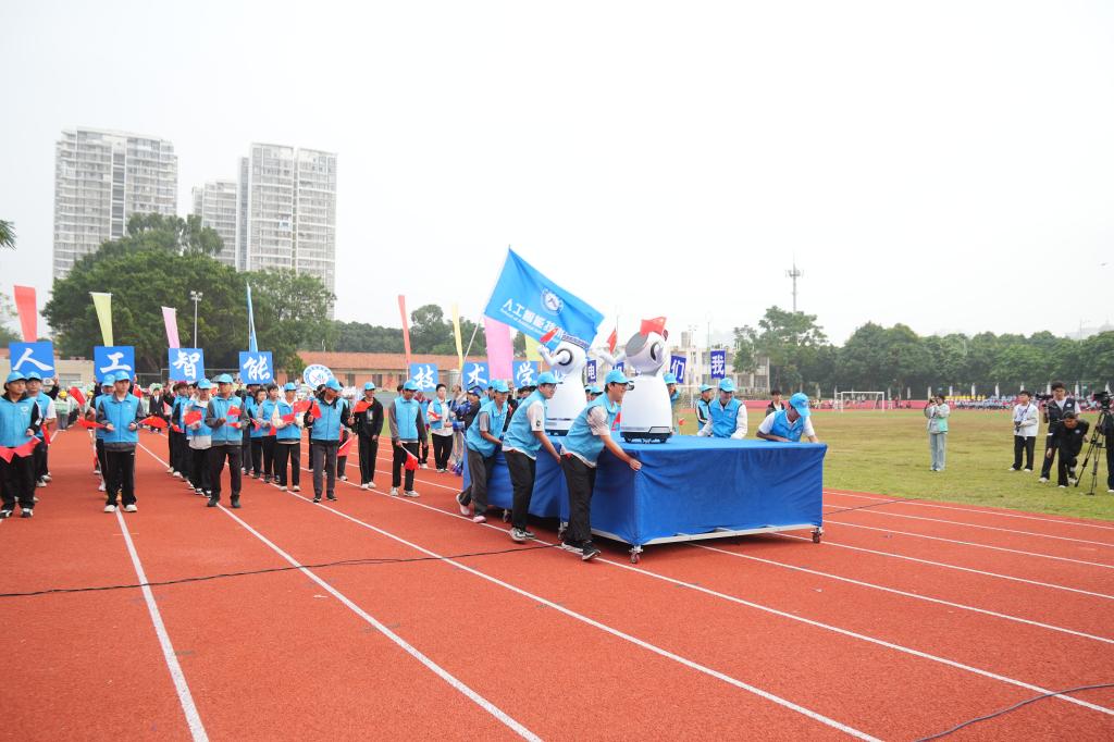 伴随着激昂的运动员进行曲,国旗、校旗护卫方队踏着整齐划一的步伐率先经过主席台接受检阅,裁判、教师、各二级学院代表队依次入场,他们精神抖擞,喊着铿锵有力的口号,迈着矫健的步伐进入运动场。