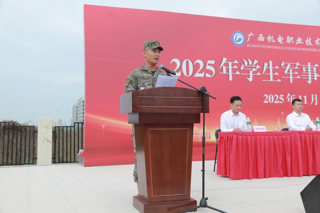 会上,武警南宁支队机动大队领导指出,军训是青年学子提炼品格、升华精神的重要途径,希望同学们在为期两周的军事训练当中锤炼坚强的意志品质和养成优良的作风,并将良好的习惯延续到未来的实训车间和理论课堂,让军魂滋养匠魂,努力成长为有理想、敢担当、能吃苦、肯奋斗的新时代青年。