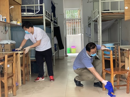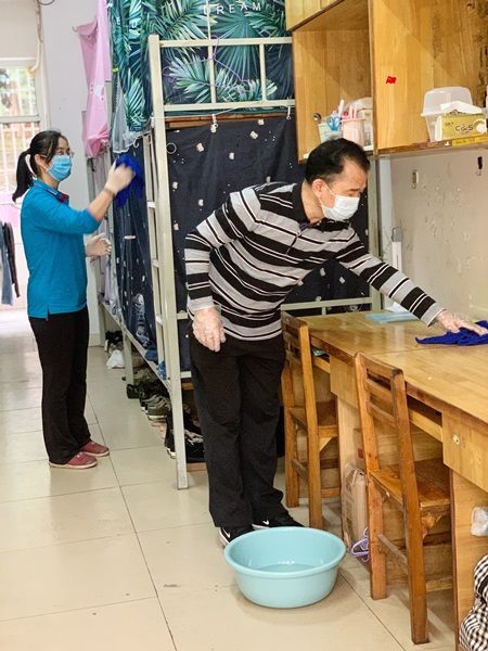 开窗通风透气,细心整理归置物品,摆齐桌椅、擦拭床架柜子、清洁窗户、扫地拖地、清扫垃圾、消毒杀菌......老师们不畏脏,不怕累,撸起袖子干得热火朝天。大家分工合作,默契配合,认真清理宿舍的每一个角落。清理过后的宿舍,干干净净,整齐有序。