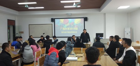 12月29日,我系与广西大学合办的2018年自考专本衔接班在艺术楼举行开班仪式。本次活动由系主任任民主持,全体任课教师及同学共同参与。