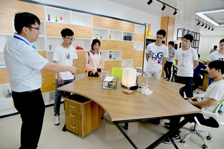 广西机械工业研究院张培命副总工程师负责了接待,并为学生进行了参观讲解。张工深入介绍了3D打印机的工作原理和分类,列举了3D打印在工业造型、建筑装饰、文化创意上的运用,解答了同学们对3D打印技术的疑惑。张工生动和形象的讲解,使同学们更深入直观的理解了3D打印技术及应用,同时也认识到学好建模软件技能的重要性,只有熟练的掌握软件运用,才能让设计想法得到充分展现。