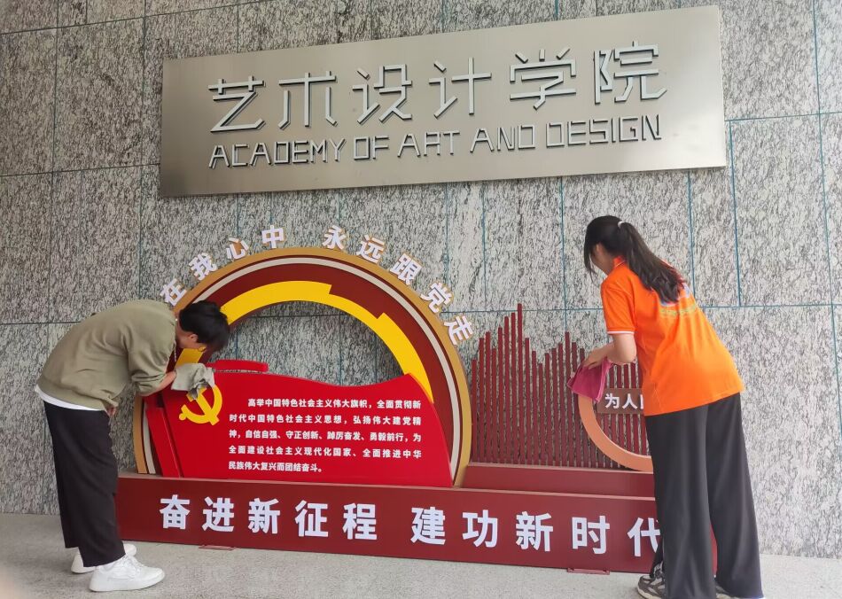 在活动负责人的组织和引导下,志愿者们组建小组,分工明确、互相配合,并对艺术设计学院所负责的区域进行全面的清洁打扫。志愿者们有的扫地,有的擦玻璃,有的擦围栏,校园内到处是他们辛勤劳动的影子,他们热情洋溢,积极劳动,充分体现出新时代青年不怕苦、不怕累的精神风貌。最后,在大家齐心协力地打扫下,各公共区域卫生有所改善,给同学们营造了良好的学习生活环境。