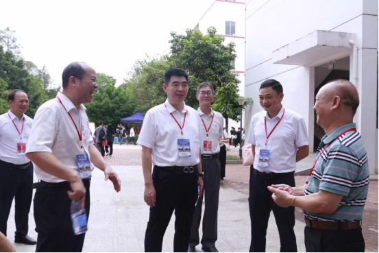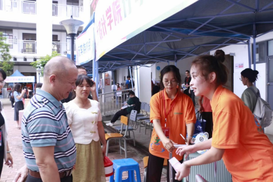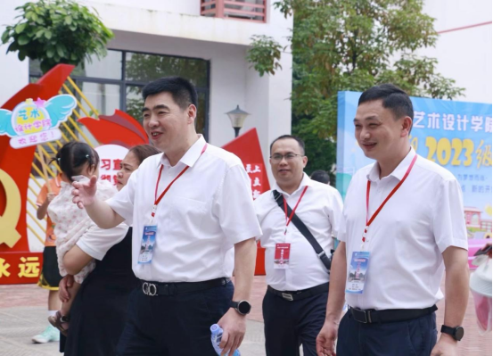 在新生报道的高峰,上午10点左右,开云kaiyun官方网站校党委书记黄小敬,校长、党委副书记吴世先,校党委副书记陈科鹤,校党委常委、副校长黄政艳等我校领导来到艺术设计学院迎新大本营看望新生和迎新志愿者,了解迎新工作进程和新生报到情况。