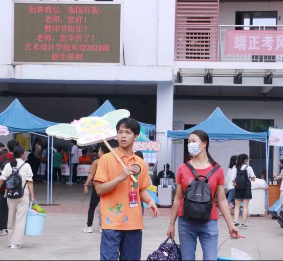 为了迎接新生的到来,学院积极部署、紧密筹备,营造了温馨、周到、热情的迎新氛围。清晨六点,由艺术设计学院团学易的学长学姐们组成的志愿者团队集合迎新大本营,严格确保每一个流程无误,即使布满汗水,他们脸上的笑容也无法被掩埋。