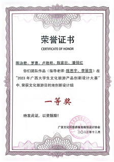 近日,我院室内艺术设计学生创作的作品《红色荔园之旅》(指导老师陈思宇、李翠萍)凭借出色的创意和卓越的设计在“2023年广西大学生文化旅游产品创新设计大赛”中一路过关斩将、脱颖而出,最终以优异的成绩荣膺一等奖。该赛由广西壮族自治区教育厅主办,广西文化和旅游策划规划设计协会、桂林理工大学旅游与风景园林学院、广西本科高校旅游管理教学指导委员会、广西旅游产业研究院、广西北部湾文化和旅游发展研究院联合承办,以“汇聚青春力量,智创文旅未来”为主题,在全区范围内吸引广西大学、广西师范大学、桂林理工大学、玉林师范学院等25多所高校,近2000余名师生报名参加。