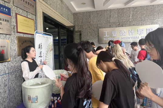 为传承和弘扬非物质文化遗产,2024年5月24日工业设计学院副院长任慧敏带领环境艺术设计专业团队在工业设计学院一楼前厅顺利开展“非遗漆扇之美”主题活动。此次活动参与人员主要有老师、学生以及退休职工。