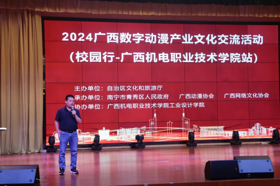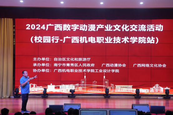 6月5日下午,2024广西数字动漫产业文化交流活动(开云kaiyun官方网站站)在学校博远楼小礼堂顺利进行。在校的22、23级动漫制作专业、数字媒体技术专业的全体学生参加交流活动,本站活动由工业设计学院张建德老师主持。