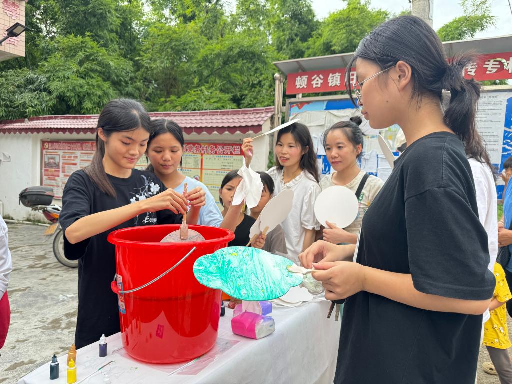 同时,实践团还携手旧金村村民开展了非遗漆扇的制作活动。在专业老师的指导下,村民们亲自动手参与漆扇的制作过程。从材料介绍、颜色选择、上漆到绘制图案,都承载着厚重的历史与文化底蕴。通过开展非遗漆扇的制作活动,鼓励当地村民和儿童参与到非遗文化的保护与传承中来,使其感受传统非遗文化的魅力。