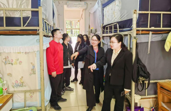 走访过程中,唐若茹深入学生宿舍,仔细察看学生的居住环境,与学生亲切交谈,详细询问他们的学习进展和生活情况,并就宿舍安全、校园服务等问题听取了学生的意见建议,对学生关切的问题逐一进行了回应,提醒同学们要注意宿舍用电安全、消防安全。她希望同学们要养成良好的学习、生活习惯,积极营造整洁高雅、健康文明、安全有序的宿舍环境。她嘱咐同学们在学习或生活方面遇到困难时及时向学院反映,以便学院为大家提供更加优越的学习生活条件,争取更多优质的教育资源。