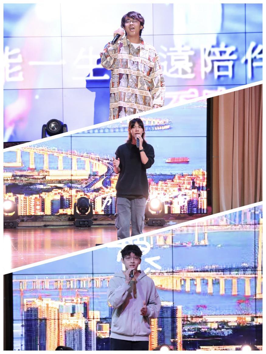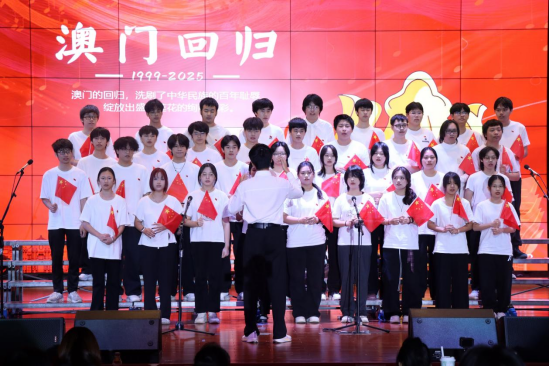 视传2501班《国家》诠释“家国同构”,视传学子立志以品牌设计助力中国企业塑造国家形象。晚会高潮迭起,动漫2503班《七子之歌-澳门》成为全场“泪点”。那悠扬又饱含深情的歌声,仿佛化作一条时光隧道,历史与现实在舞台上完美交融,台下的观众被深深触动,掌声与欢呼声如潮水般此起彼伏,那是他们对祖国强大、澳门回归的自豪,更是对伟大祖国繁荣昌盛的美好祝愿。